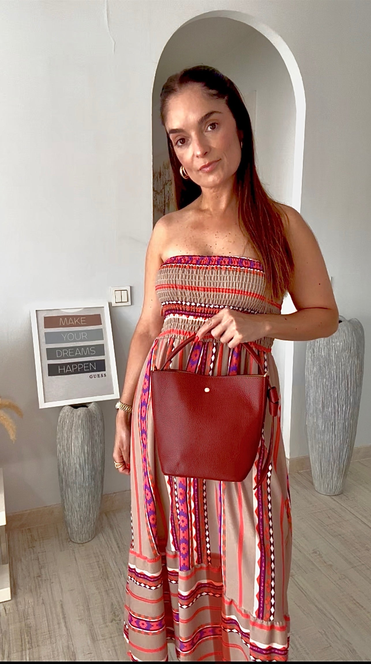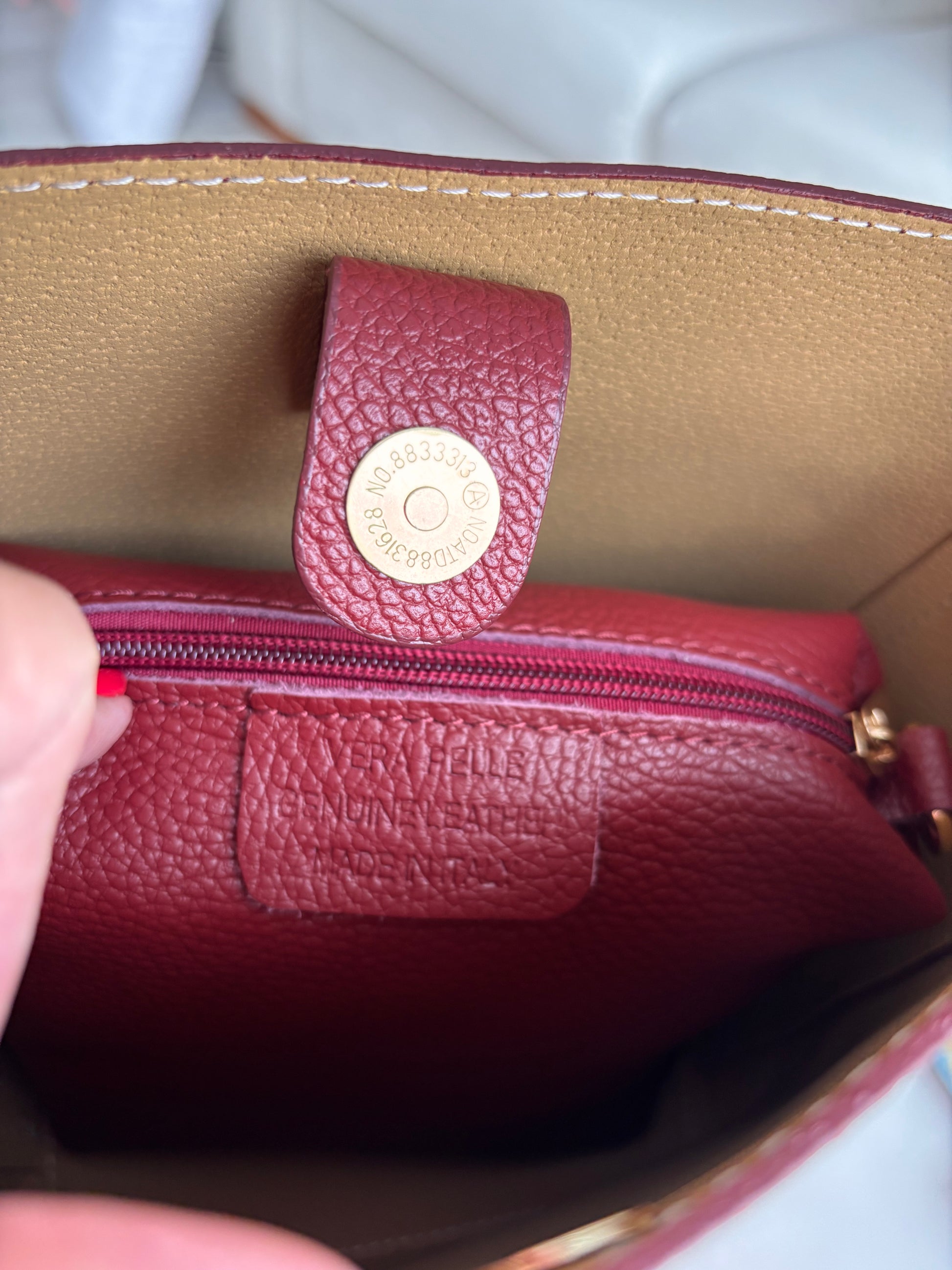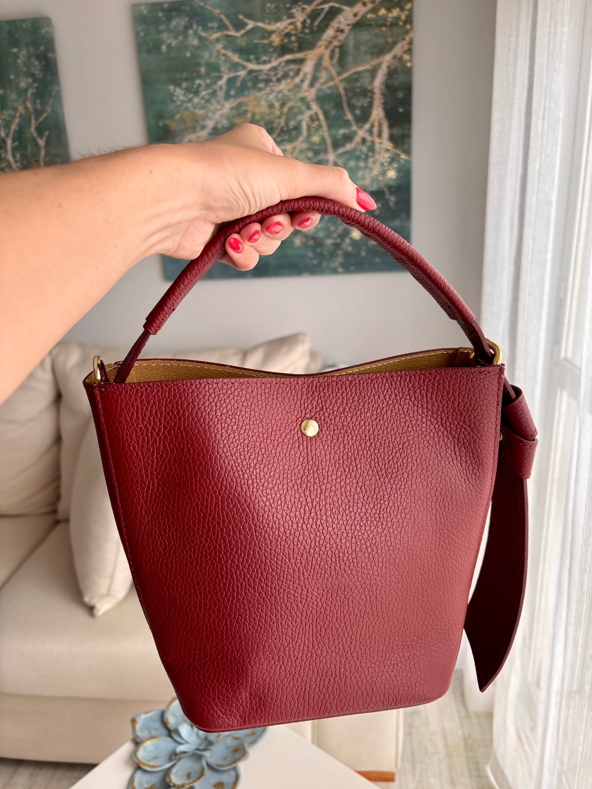 Bolso en piel con cierre y bolsillo interior que se puede quitar.
