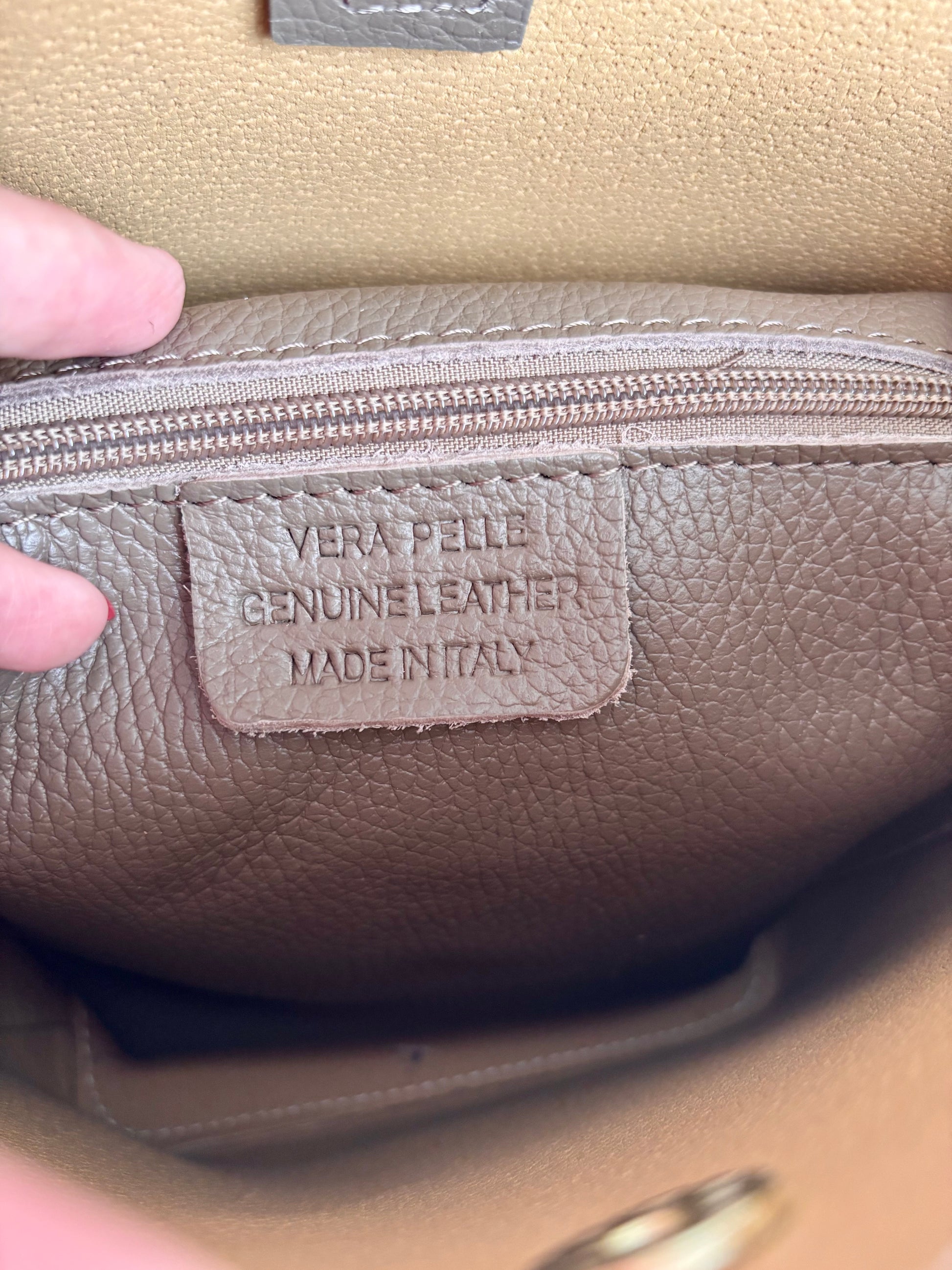 Bolso en piel con cierre y bolsillo interior que se puede quitar.