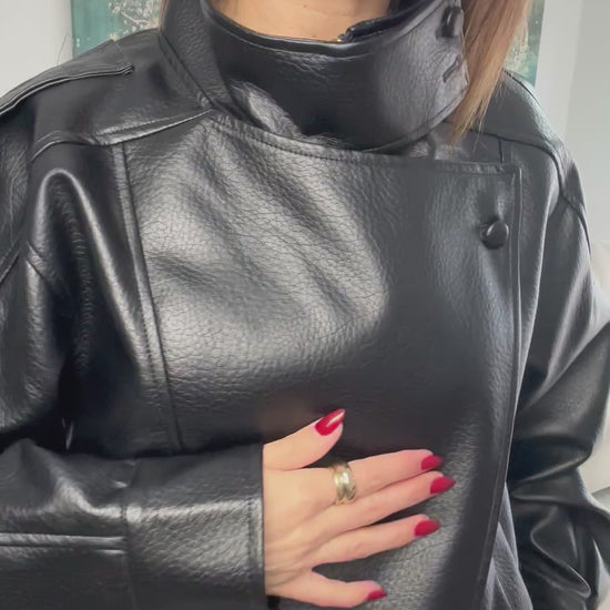 Chaqueta de polipiel estilo oversize con cierre de cremallera.