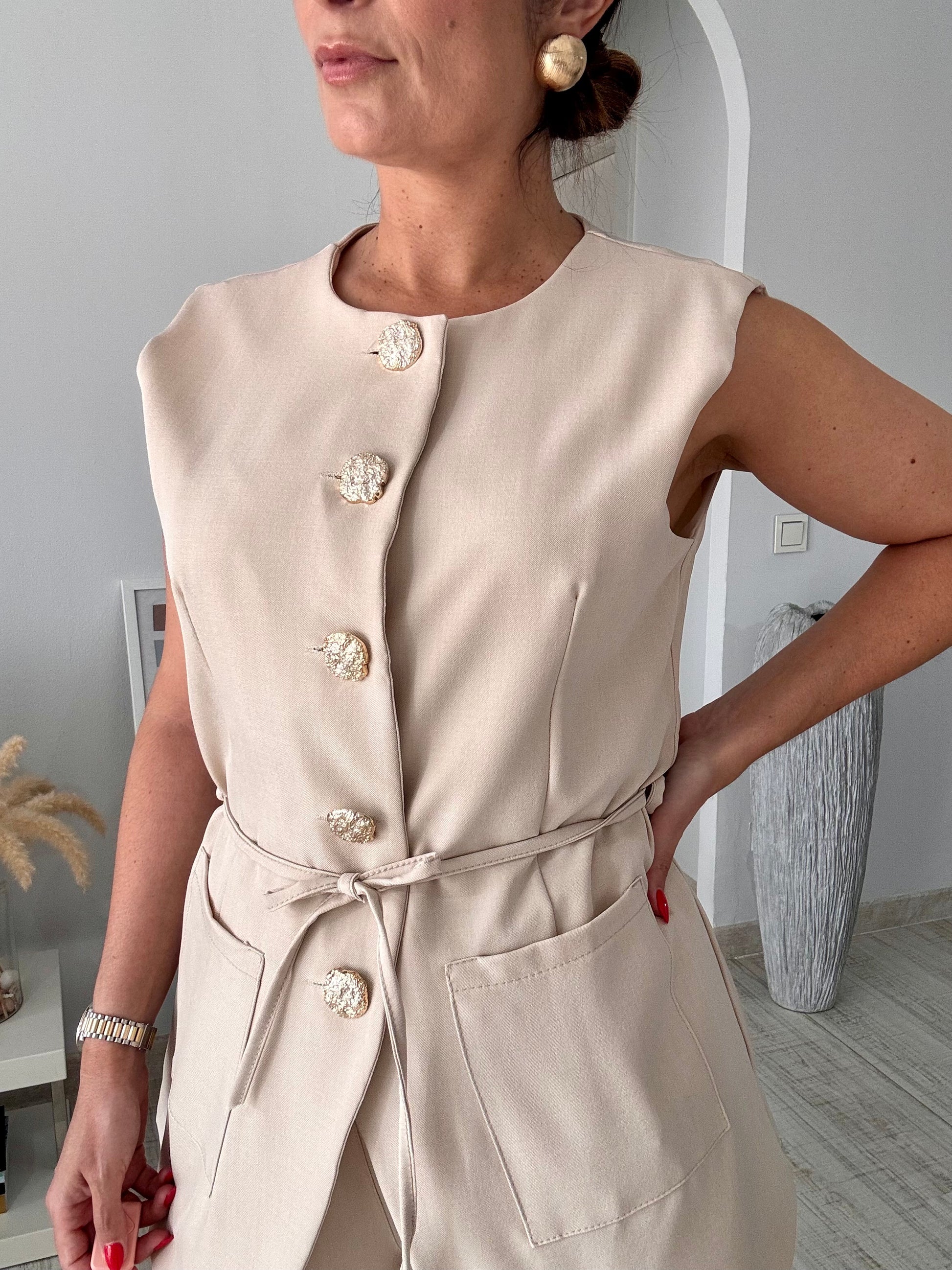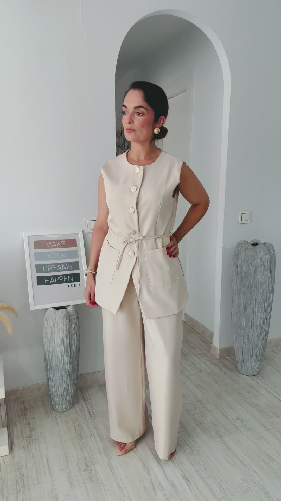 Conjunto chaleco y pantalón de 2 bolsillos con cintura elástica.