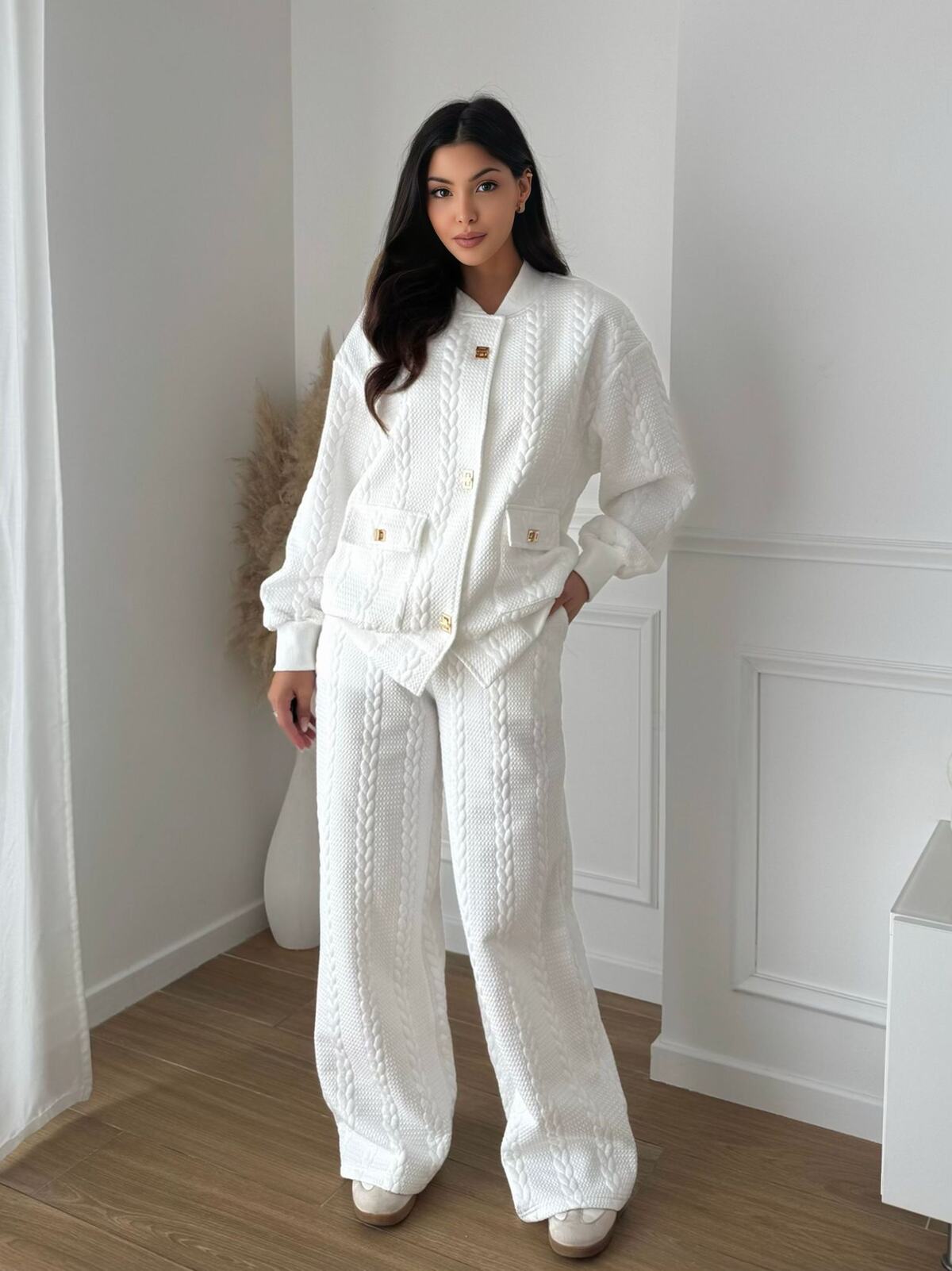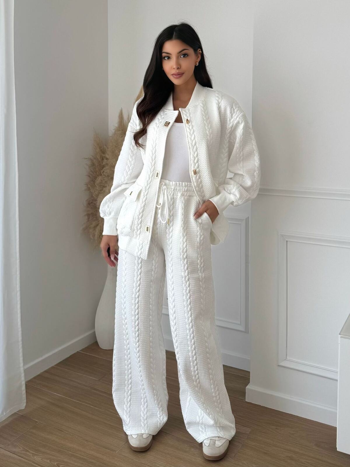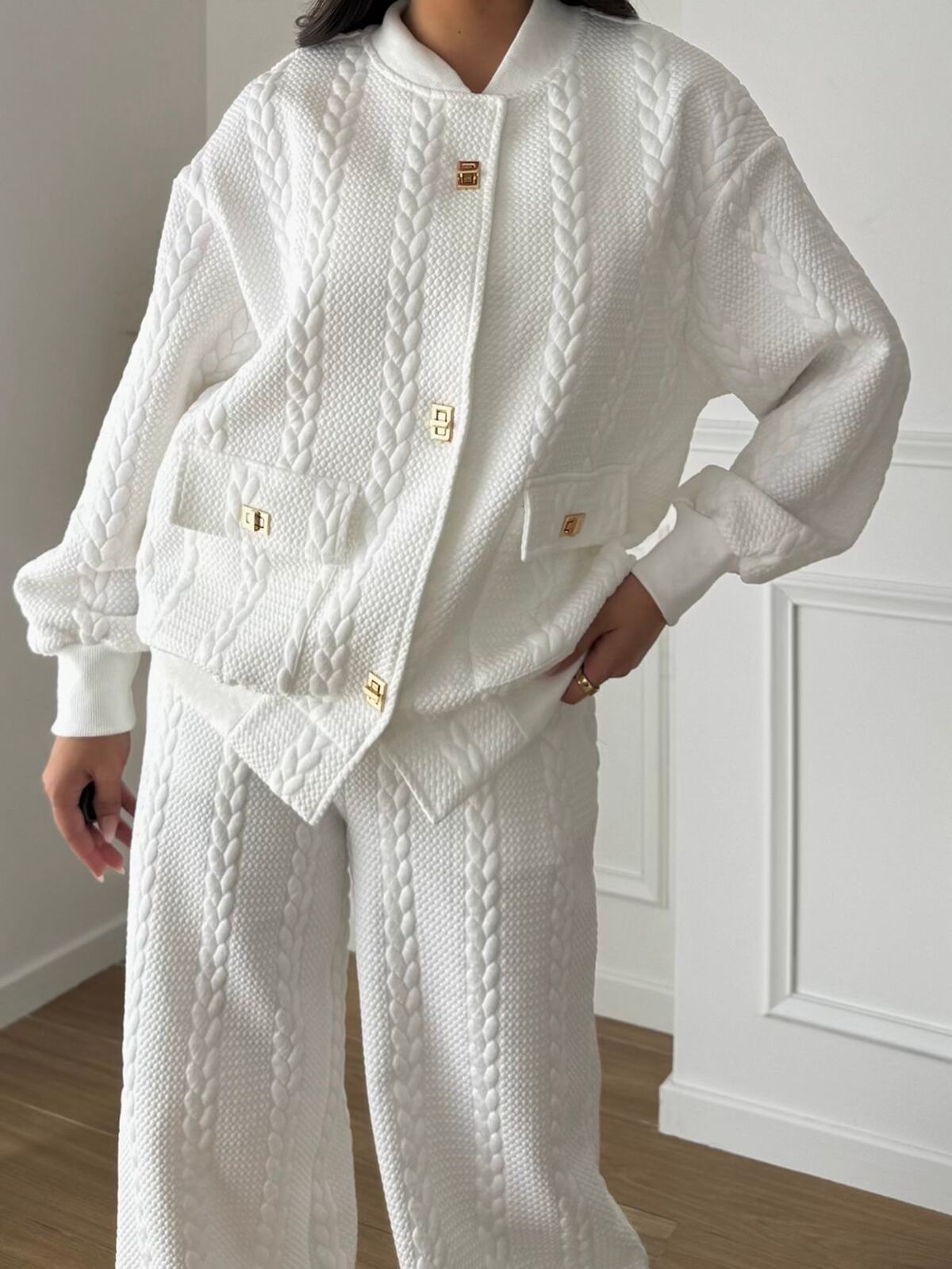 Conjunto compuesto por rebeca y pantalón.